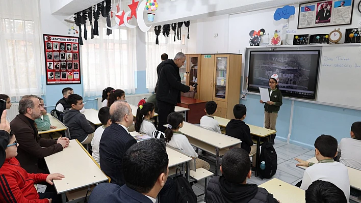 Elazığ Valisi Numan HATİPOĞLU, Milli Eğitim Müdürü Beraat ŞAHİN ve Fırat Kalkınma Ajansı Genel Sekreteri Mehmet Şirin BUDANCAMANAK bugün Nahit Ergene İlkokulunu ziyaret ederek Harput Belgeseli’ni öğrenciler ile birlikte izledi.
