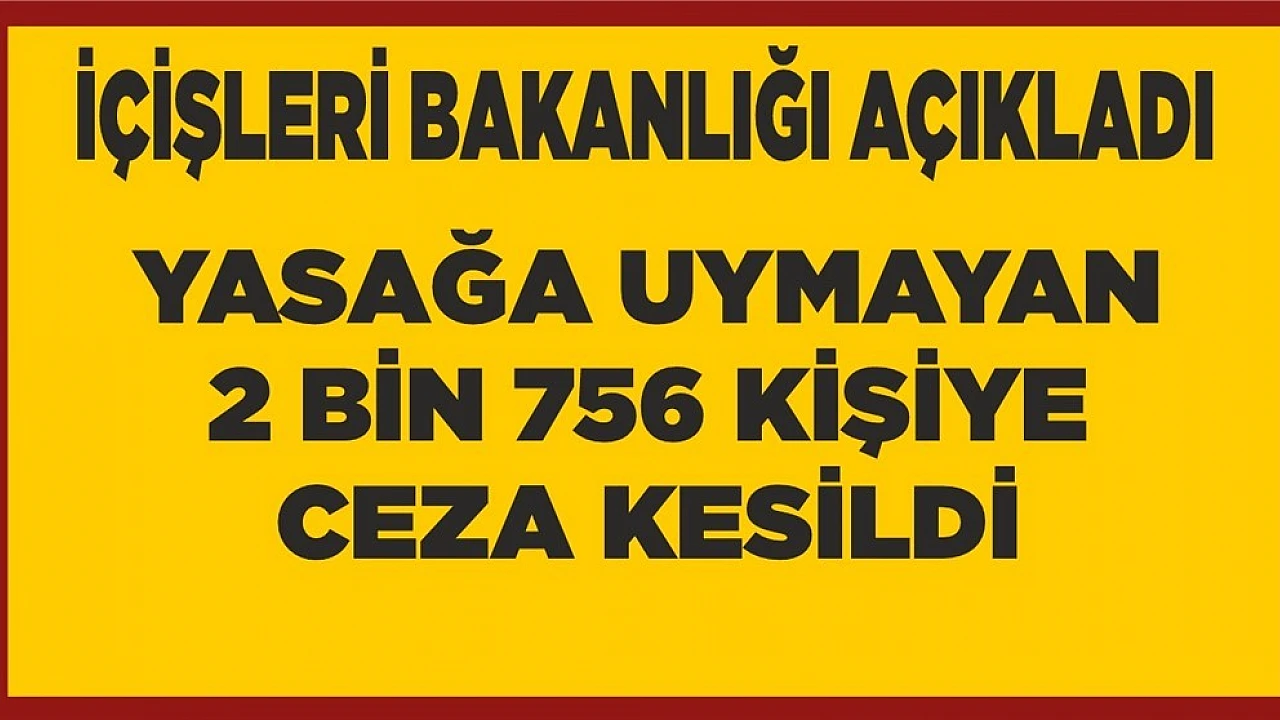 İçişleri Bakanlığı, sokağa çıkma yasağı ile ilgili olarak, "Sokağa çıkma yasağı başladığı andan itibaren bu kuralı ihlal eden 2 bin 756 kişiye adli/idari işlem gerçekleştirilmiştir" açıklamasını yaptı.