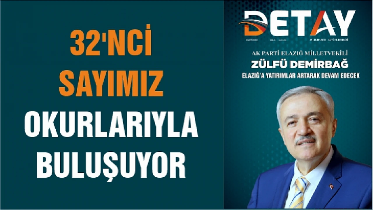 Elazığ'ın en uzun soluklu dergisi Detay, 32'nci sayısıyla okurlarıyla buluşuyor. Derginin yeni sayısının kapağında AK Parti Elazığ Milletvekili Zülfü Demirbağ yer aldı.