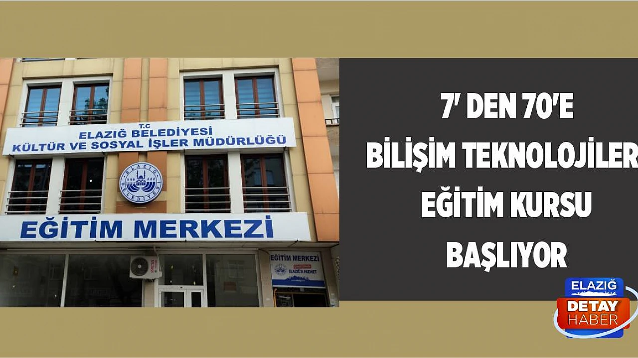 7'den 70'e Bilişim Teknolojileri Eğitim Kursu, EBEGEM bünyesinde 16 Ağustos Pazartesi günü başlıyor. Elazığ Belediyesi Ekonomi Geliştirme Merkezi (EBEGEM), bünyesinde açtığı farklı kurslarla vatandaşların gelişimlerine ve geleceklerine katkı sağlamaya devam ediyor.
