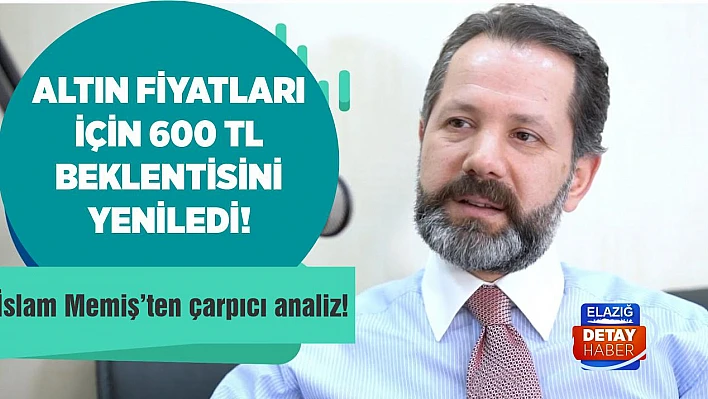 Altın ve Para Piyasaları Uzmanı İslam Memiş, piyasalardaki son durumu Haber 7'ye yorumladı. Memiş, altın fiyatları için 600 TL beklentisini yenilerken, bu rakam sürpriz olmayacak dedi.