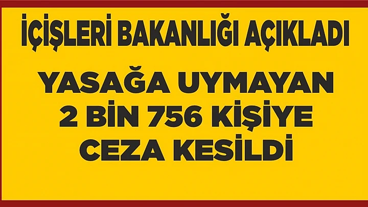 İçişleri Bakanlığı, sokağa çıkma yasağı ile ilgili olarak, "Sokağa çıkma yasağı başladığı andan itibaren bu kuralı ihlal eden 2 bin 756 kişiye adli/idari işlem gerçekleştirilmiştir" açıklamasını yaptı.