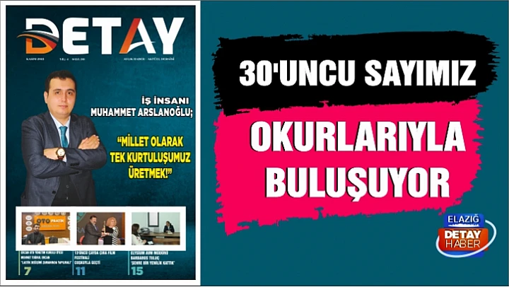 Elazığ'ın en uzun soluklu dergisi Detay, 30'uncu sayısıyla okurlarıyla buluşuyor. Derginin yeni sayısının kapağında iş insanı Muhammet Arslanoğlu yer aldı.