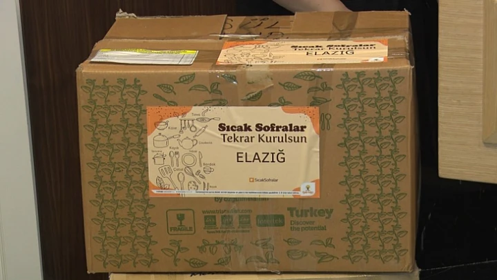 AK Parti Elazığ İl Kadın Kolları, depremzedeler için başlatılan 'Sıcak Sofralar Tekrar Kurulsun Mutfak Seti' kampanyası ile deprem bölgelerindeki ailelere yardımları ulaştırıyor.