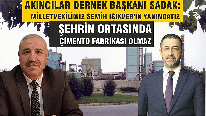 Elazığ'da uzun yıllardır tartışma konusu olan ve şehir merkezine yakın konumuyla ciddi hava kirliliğine neden olan Çimento Fabrikası'nın taşınması için gösterilen çabalara kamuoyunun desteği artarak devam ediyor. MHP Elazığ Milletvekili Semih Işıkver'in 'Şehrin ortasında çimento fabrikası olmaz' sözleriyle sık sık gündeme taşıdığı konuya bir destek de Akıncılar Derneği Elazığ Şube Başkanı Tevfik Sadak'tan geldi.
