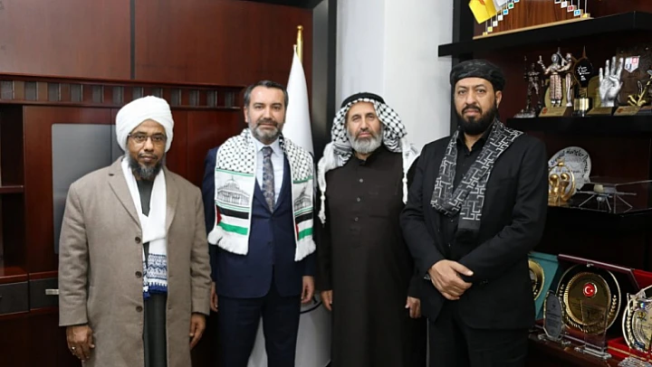 Filistin Alimler Birliği Başkanı Dr. Nevvaf Tekruri, Yemen Alimler Birliği Başkanı Prof. Dr. Abdullah Zindani, Sudan Alimler Birliği Başkanı Dr. Abdulhay Yusuf, Filistin Alimler Birliği Türkiye Şube Başkanı Dr. Huzeyfe El-Hati ve beraberindekiler Elazığ Belediye Başkanı Şahin Şerifoğulları ile bir araya geldi.