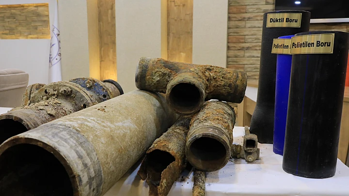Toplantıda sergilenen eski içme suyu boruları, su kayıpları, sık arızalar, yetersiz kapasite gibi sorunları net biçimde gözler önüne serdi.