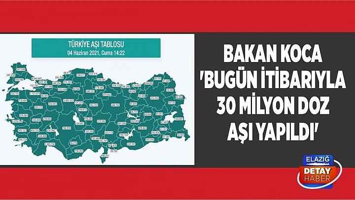 Sağlık Bakanı Koca, aşılama çalışmalarına değinerek bugün itibariyle 30 milyon doz aşı uygulandığını duyurdu.