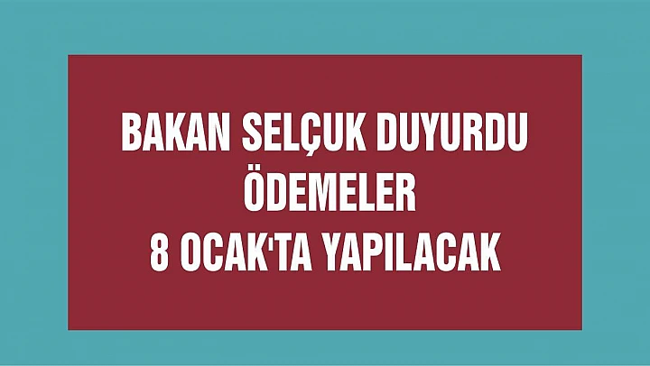 Bakan Selçuk duyurdu ödemeler 8 Ocak'ta yapılacak