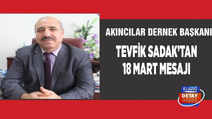Elazığ Akıncılar Derneği Şube Başkanı Tevfik Sadak, 18 Mart Şehitler Günü ve Çanakkale Zaferi dolayısıyla bir mesaj yayımladı.