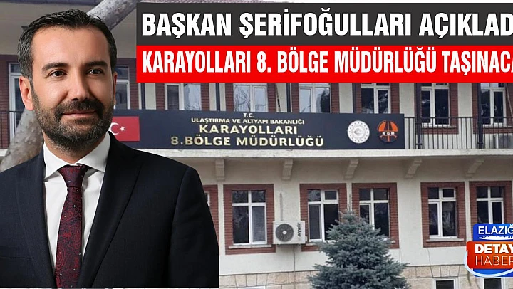 Geçtiğimiz gün Ankara'da Bakanlarla yaptığı görüşmelerin detaylarını aktaran Başkan Şerifoğulları, karayolları bölge müdürlüğünün taşınacağının müjdesini verdi. “Karayolları Bölge Müdürlüğü'nün taşınacağının müjdesini veriyorum” diyen Başkan Şerifoğulları, Karayolları Bölge Müdürlüğü'nün Malatya Yolu'ndaki Fırat Üniversitesi Harput Yerleşkesinin yanına taşınacağını söyledi. Başkan Şerifoğulları ayrıca, Karayolları Bölge Müdürlüğü'nün mevcut yerine ise millet bahçesi yapılacağını açıkladı.