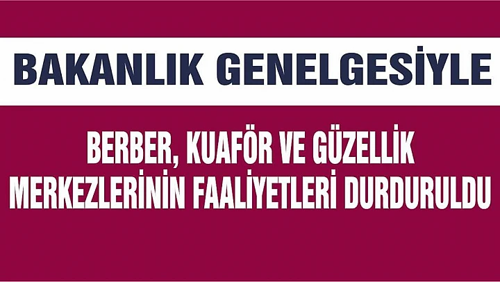 Genelge ile vatandaşların bir arada bulunmaları ve yapılan işlem sırasında birçok kez fiziksel temasın olması nedeniyle anılan virüsün yayılımını artırarak vatandaşlar açısında riskli olabilecek; berber, güzellik salonu/merkezi, kuaför vb. işyerlerin faaliyetleri bugün 18:00 saati itibariyle geçici süreliğine durdurulacak. Bakanlık söz konusu bu tedbirlere ilişkin vali/kaymakamlar tarafından il/ilçe belediyeleri ile işbirliği içinde ilgi Kanun hükümleri çerçevesinde gerekli gerekli tedbirlerin ivedilikle planlanması/uygulanması ve kolluk birimleri tarafından konun takip edilerek uygulamada herhangi bir aksaklığa meydan verilmemesini istedi.