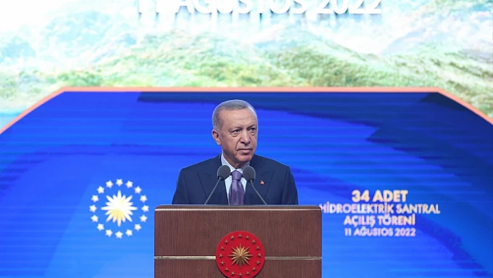 Cumhurbaşkanı Recep Tayyip Erdoğan, Beştepe Millet Kongre ve Kültür Merkezi'nde DSİ tarafından yapımı tamamlanan 34 hidroelektrik santralinin açılış törenine katıldı.