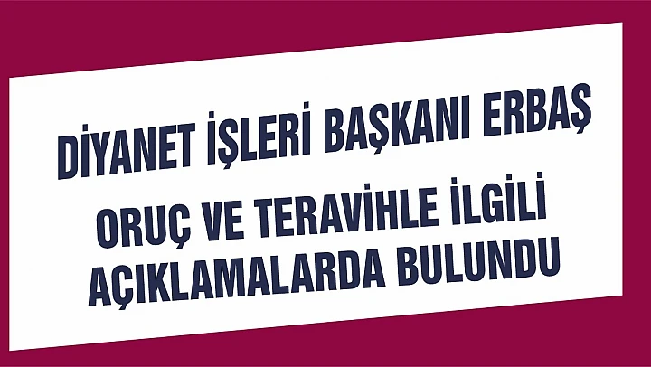 Erbaş'ın açıklamalarından öne çıkanlar şöyle: Bu yılın temasını 'Ramazan ve Sorumluluk Bilinci olarak belirledik. Oruç ibadetinde asıl amaç kalbin, aklın oruç ile bütünleşmesi. Orucun bütün bilimsel araştırmalarda bağışıklığı güçlendirdiği ortaya konulmuştur. Tüm tedbirleri aldık almaya çalışıyoruz.