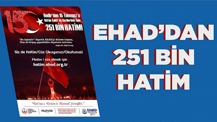 Evrensel Hafızlar Derneği (EHAD), Türkiye Gaziler ve Şehit Aileleri Vakfı ile Müstakil Sanayici ve İşadamları Derneği (MÜSİAD) Ankara Şubesi, 15 Temmuz şehitleri ve gazileri için 251 bin hatim kampanyası başlattı.