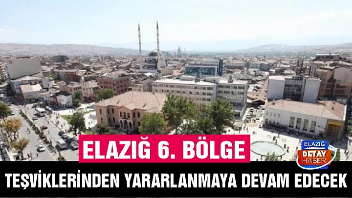 Elazığ'ın da aralarında bulunduğu 25 il için 6. Bölge teşvikleri 1 yıl daha uzatıldı. Elazığ'ın da aralarında bulunduğu 24 il geçtiğimiz yıl 'Cazibe Merkezleri Programı'na alınmıştı. 'Cazibe Merkezleri Programı' kapsamında OSB veya Endüstri Bölgelerindeki yatırımlara 6. Bölge desteklerinin sağlanması yılsonunda sona erecekti.