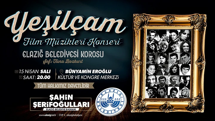 Elazığ Belediyesi Korosu tarafından 15 Nisan Salı günü saat 15.00'te Yeşilçam Film Müzikleri Konseri düzenlenecek.