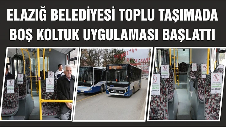 Elazığ Belediyesi tarafından toplu ulaşım araçlarında güvenli mesafenin korunması için yapılan düzenleme doğrultusunda, yolcuların oturma şekli yolcuların birbirleriyle temasını sınırlandırmak amacıyla koltuklarda bir koltuk boş bırakıldı.