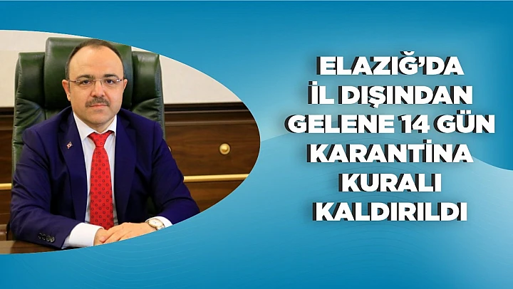 Koronavirüs tedbirleri kapsamında Elazığ İl Hıfzıssıhha Meclisi tarafından salgın nedeniyle 2 Nisan'dan itibaren uygulamaya konulan, şehir dışından gelenlere 14 gün karantina kuralının bugün itibariyle kaldırıldığı bildirildi.