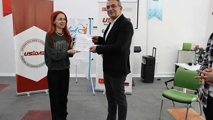 Ardından, Genel Sekreter Cemil Yatkın ve Genel Sekreter Yardımcısı Murat Okubay, kursiyerlere sertifikalarını takdim etti. İpekyolu Uluslararası Çocuk ve Gençlik Çalışmaları Merkezi'nin ev sahipliği yaptığı bu önemli organizasyon, uluslararası gençlik çalışmaları ve sürdürülebilir kalkınma konularında önemli bir platform sunmaya devam ediyor.