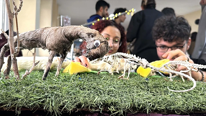 F.Ü. öğrencileri, hayvanların iskelet ve tahnitini yapıyor