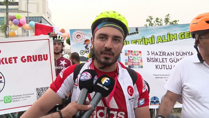 Bisikletliler Derneği Başkanı Atakan Özdal, “Bugün 3 Haziran bisiklet günü ve çevre gününü kutlamak amacıyla bisiklet turu düzenliyoruz. Çevre haftası münasebetiyle. Çevre Şehircilik İl Müdürlüğü'ne ve Emniyet Müdürlüğü'ne desteklerinden dolayı teşekkür ederiz. Buradan büyün halkımızı bisiklet sürmeye davet ediyorum. Sportif yaşamın gelişmesi ve yaşam kalitesinin artması için çalışmalar yürütmekteyiz bu bağlamda” şeklinde konuştu. Bisikletli vatandaşlara, Elazığ İl Emniyet Müdürlüğü ekipleri de eşlik etti. Elazığ Belediyesi önünde pedal çevirmeye başlayan bisikletlilerin etkinliği öğretmenevi önünde son buldu.