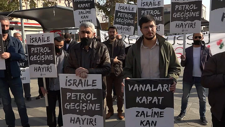 Ayrıca protestoya katılanlar tarafından dev Türk Bayrağı açılarak İsrail'in Gazze'ye yönelik saldırıları kınandı.