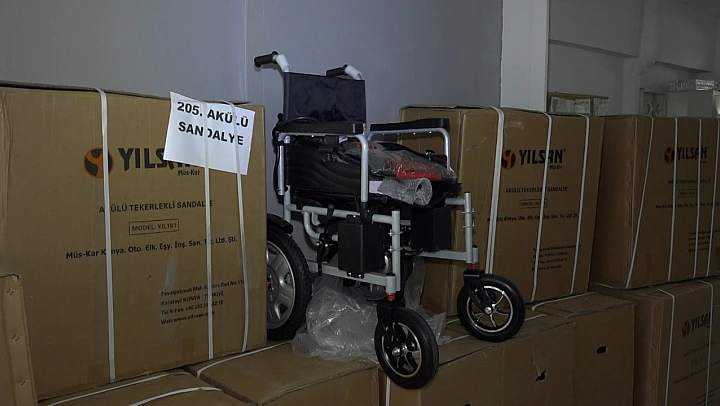 Başkan Yılmaz: 'Bugün 205. Akülü sandalyemizi dağıtacağız tabi bunun yanında 100'e yakında tekerlekli sandalye dağıttık. Bize ulaşan bütün kardeşlerimize yardımcı olduk ve olmaya da devam edeceğiz. Hepimiz yarının birere engelli adayıyız.' Dedi.