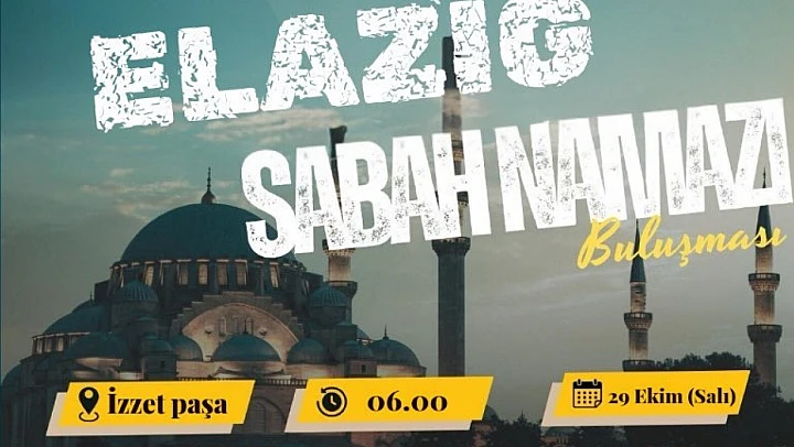 Elazığ HÜDA PAR Gençlik Kolları tarafından 29 Ekim Salı günü İzzet Paşa Camii'nde Sabah Namazı Buluşması gerçekleştirilecek.