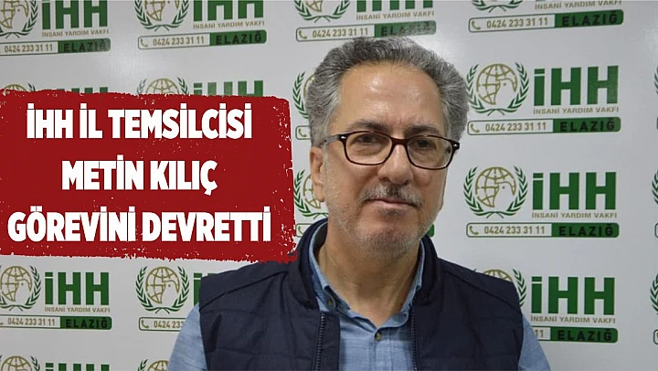 İHH İl Temsilciliği görevini yürüten ve yaptığı görev süresi boyunca vatandaşların yardım seslerini duyan ve duyuran İHH Elazığ İl Temsilcisi Metin Kılıç Konya'ya tayininin çıkması nedeniyle görevini devretti. Kılıç yaptığı açıklamada, mevcut yönetimin M. Resul Güler başkanlığında çalışmalarına devam edeceğini söyledi.