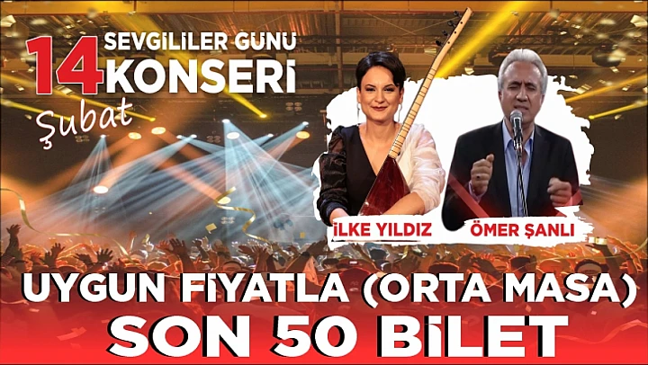 Elazığ'da 14 Şubat Cuma günü muhteşem bir konser düzenlenecek. 14 Şubat Sevgililer Günü'ndeki konserde TRT 1 Televizyonunda yayınlanan 'Sen Türkülerini Söyle' yarışmasında tanınan Türk Halk Müziği sanatçısı 'İlke Yıldız' sahne alacak.