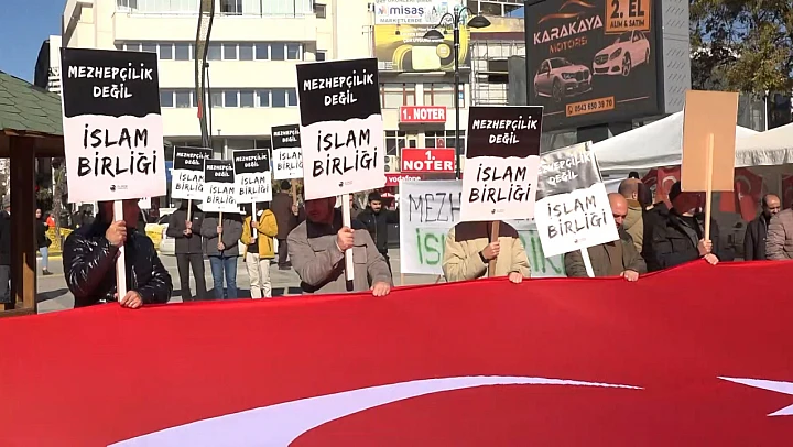 Protesto gösterisi kuranı kerim okunması ile devam etti. Protestoya katılan vatandaşlar, Türk ve Filistin bayrakları açarak hazırladıkları pankart ile karton dövizlerini sergilediler.
