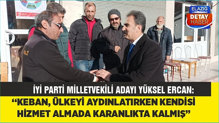 Her kesimin olduğu gibi esnaflarımızın problemlerinin de İYİ Parti'nin iktidarında son bulacağını ifade eden Ercan, “Kebanlı esnaflarımız ve halkımıza partimizin ekonomik politikalarını anlattık. Sorunların çözüm yollarını dile getirdik. İmtiyazlı holdinglere ve iktidara yakın şirketlere peşkeş çekilen kaynakların halkımıza ve esnaflarımıza yönlendirilmesiyle bu problemlerin kısa sürede giderebileceğini örnekleriyle anlattık. Keban halkımız bizi bağırlarına bastılar. İlçe Başkanımız Ramazan Arslan ilçede Keban'da güzel çalışmalar yapmış, halkımızın güvenini kazanmış. İyi Parti iktidarında Keban ile ilgili ilçeyi hak ettiği yere taşıyacak önemli projelerimiz var. Ülkemizin en önemli barajını bünyesinde bulunduran ve ülke ekonomisine önemli bir katkı sunan Keban ilçemiz be yazık ki bunun karşılığını yıllarca alamamış, hatta bundan dolayı mağduriyetler yaşamış. Tüm bu yanlışlıkları düzelterek halkımızın yüzünü güldürecek İyi Pati iktiranına az kaldı” dedi.
