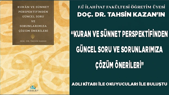 Hadis, Arap dili ve Edebiyatı alanında çalışmalar yapmakta olan İlahiyat Fakültesi Öğretim Üyesi Doç. Dr. Tahsin Kazan 'Hanefi Alimlere Göre Hadis Usulü' adlı eserinden sonra 'Kuran ve Sünnet Perspektifinden Güncel Soru ve Sorunlarımıza Çözüm Önerileri' adlı eseri Asalet Yayınları tarafından okuyucularının beğenisine sunuldu.