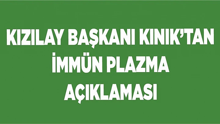 Türk Kızılay Genel Başkanı Kınık, Sağlık Bakanlığının immün plazma tedavisinde daha önce Covid-19 tanısı konan ve tedavi sürecinin ardından iyileşen hastalardan alınan ve Türk Kızılayı tarafından toplanan kan plazmalarının ağır durumdaki vakaların tedavisinde kullanılmasını amaçlıyor. Bu sayede de kan plazması ile kritik durumdaki hastaların tedavi edilmesi hedeflendiğini belirtti. Söz konusu plazmada yer alan ‘immünglobulin' denilen antikorlar, yoğun bakıma alınmış, solunum sıkıntısı çeken ve durumu giderek kötüleşen hastalarda tedavi edici özellik taşıyor.
