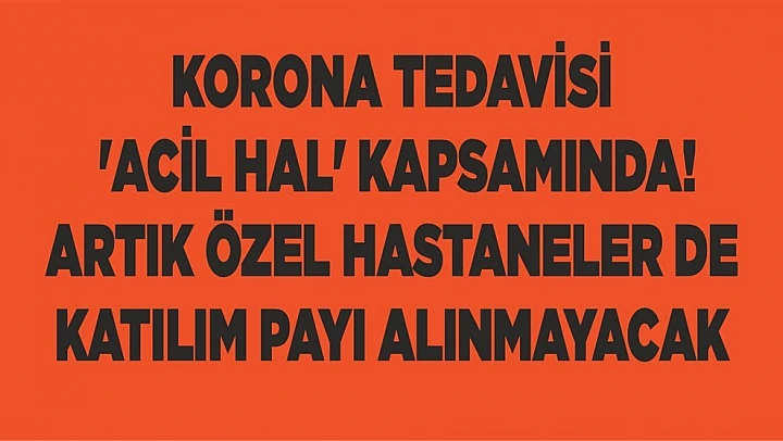 Korona tedavisi 'acil hal' kapsamında! Artık özel hastaneler de katılım payı alınmayacak
