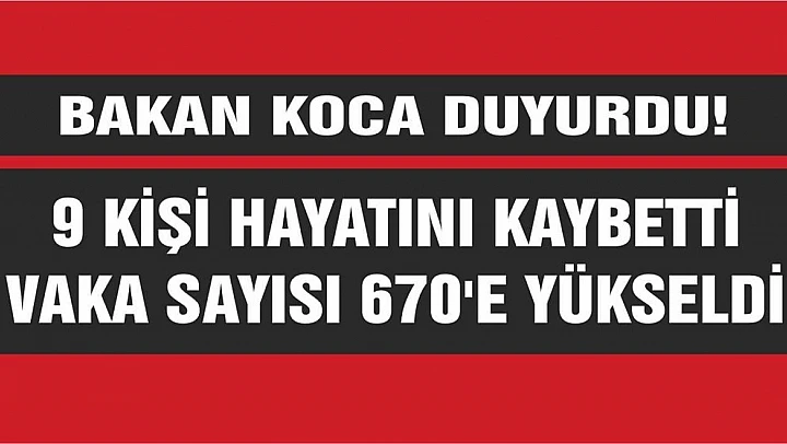 Sağlık Bakanı Dr. Fahrettin Koca, Koronavirüs salgını nedeniyle 9 kişinin hayatını kaybettiğini, vaka sayısının ise 670'e çıktığını duyurdu.