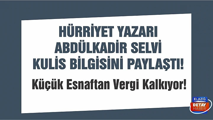 Küçük esnafı sevindirecek haber Hürriyet yazarı Abdülkadir Selvi'den geldi. 'Sorunlar tespit edildi, şimdi adım adım çözümler devreyle sokuluyor' diyen Selvi, yıllık cirosu 240 bin liranın altında olan esnaftan 2021 yılı için vergi alınmayacağını yazdı.