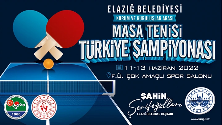 Elazığ Belediye Başkanı Şahin Şerifoğulları'nın girişimleri ve talepleri sonucu şehrimizin ev sahipliği yapacağı 2021-2022 sezonu Kurum ve Kuruluşlar Arası Masa Tenisi Türkiye Şampiyonası başlıyor.