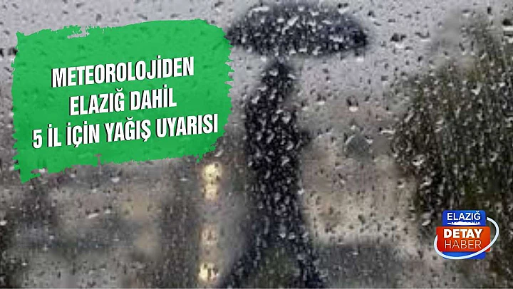 Meteoroloji 13. Bölge Müdürlüğü, 5 il için yağış uyarısı yaptı. Meteoroloji 13. Bölge Müdürlüğü Elazığ Tahmin ve Uyarı Merkezi tarafından yapılan açıklamada:" Bölgemizde havanın parçalı yer yer çok bulutlu,sabah saatlerinden itibaren Elazığ ve Malatya çevrelerinde yer yer aralıklı yağmur, Adıyaman ve çevrelerinde ise yer yer aralıklı hafif sağanak yağmurlu, Tunceli ve Bingöl çevrelerinde ise aralık yağmur yüksek kesimlere karla karışık yağmur ve kar yağışı beklenmektedir. Hava sıcaklıklarında önemli bir değişiklik beklenmemektedir.