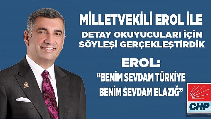 Cumhuriyet Halk Partisi Elazığ Milletvekili Gürsel Erol ile Detay Dergisi okuyucuları için bir söyleşi gerçekleştirdik. 41 yıl sonra CHP'nin Elazığ'da bir milletvekili çıkarmasının büyük bir devrim olduğunu ifade eden Erol, vatandaşın hizmete susadığını, AK Partili vekillerin halkın isteklerini karşılama noktasında büyük eksikliklerinin olduğunu dile getirdi. Erol, iktidar partisinin yıllarca Elazığ'a, 'nasıl olsa bize oy veriyorlar' diye baktığı için hiç bir sorunun da çözülmediğini belirtirken, Elazığ'ın problemlerinin muhalefetsizlikten, dile getirilmemekten kaynaklandığını ifade etti.