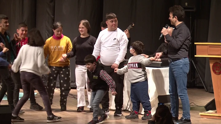 Down sendromlu özel çocuklar, Oğuz Aksaç'ın türküleri eşliğinde sahnede halay çekerek gönüllerince eğlendiler.