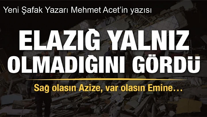 Elazığ depremi sonrası hüzünlenen kalplerin imdadına, enkaz altında bebeğiyle sıkışıp kalan bir annenin önce kendisini değil de, kucağındaki bebeğini kurtarmak için cılız bir sesle seslenmesi, dayanamaz hale geldiği halde, bebeğinin dayanamaz hale gelmesinden daha fazla yakınması, sonra da hem annenin hem bebeğinin canlı olarak çıkarıldığı haberi yetişti.