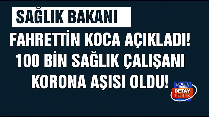 Sağlık Bakanı Fahrettin Koca, son dakika açıklamasında, 'Şu an itibarıyla birinci doz aşısını olan sağlık çalışanı sayısı 100 bini geçti' dedi. Sağlık Bakanlığı, Covid-19 aşısı olanların internet üzerinden anlık takibinin yapılabilmesi için 'Covid-19 Aşısı Bilgilendirme Platformu' oluşturdu.