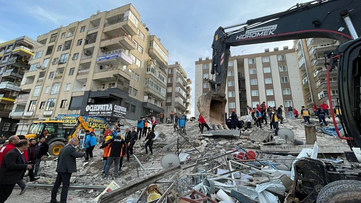 Kahramanmaraş merkezli 6 Şubat'ta meydana gelen depremlerden etkilenen kentte Haliliye ilçesindeki bir bina çöktü.