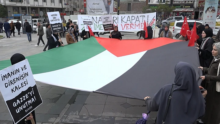 15 Temmuz Demokrasi Meydanı'nda gerçekleştirilen eylemde, katılımcılar Gazze'de yaşananları ve İsrail'i lanetleyen dövizler taşıdı. Eylemde, Kur'an-ı Kerim tilaveti okunup dualar edilirken, katılımcılar Filistin halkıyla dayanışma mesajları verdi.