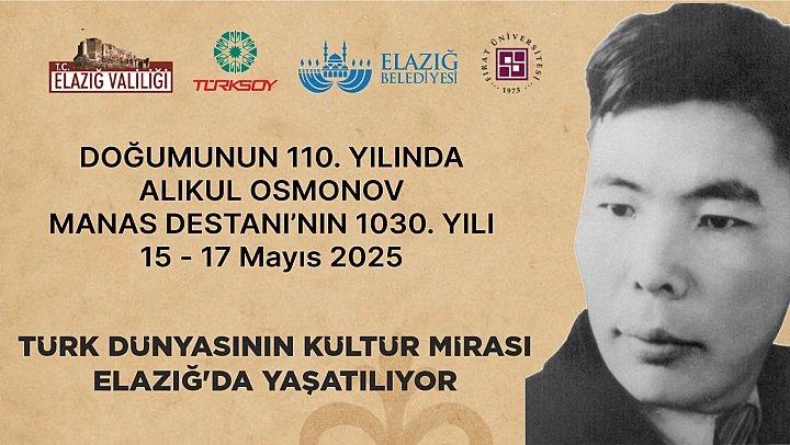 Kırgız edebiyatının modernleşmesinde önemli rol oynamış, geleneksel halk şiirini modern bir yaklaşımla yeniden şekillendirmiş, Kırgızistan'ın ve Türk dünyasının en güçlü şairlerinden Alıkul Osmonov'un 110. doğum yılı ile Türk dünyasının ortak mirası Manas Destanı'nın 1030.yılı anısına, Elazığ'da 15-17 Mayıs 2025 tarihleri arasında üç gün sürecek etkinliklerle uluslararası düzeyde bilim, kültür ve sanat dünyasını buluşturacak kapsamlı bir program gerçekleştirilecek.