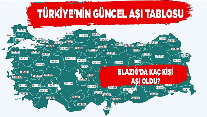 İstanbul'da toplam yapılan aşı sayısı 4 milyon 104 bin 553'e ulaşırken, Ankara'da 2 milyon 12 bin 72, İzmir'de 1 milyon 698 bin 43, Elazığ'da ise 169 bin 196 olarak belirlendi.