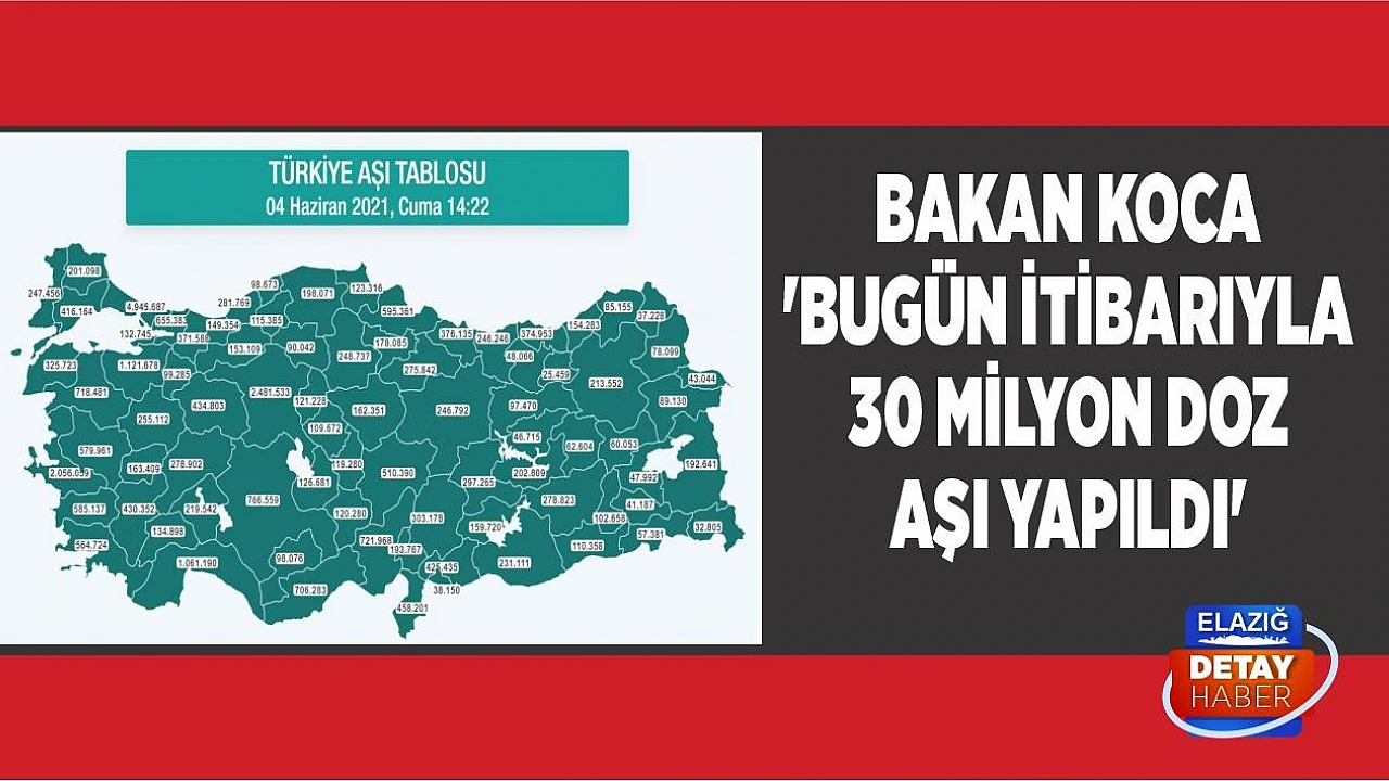 Sağlık Bakanı Koca, aşılama çalışmalarına değinerek bugün itibariyle 30 milyon doz aşı uygulandığını duyurdu.