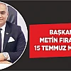 Başkan Fırat'tan 15 Temmuz Mesajı